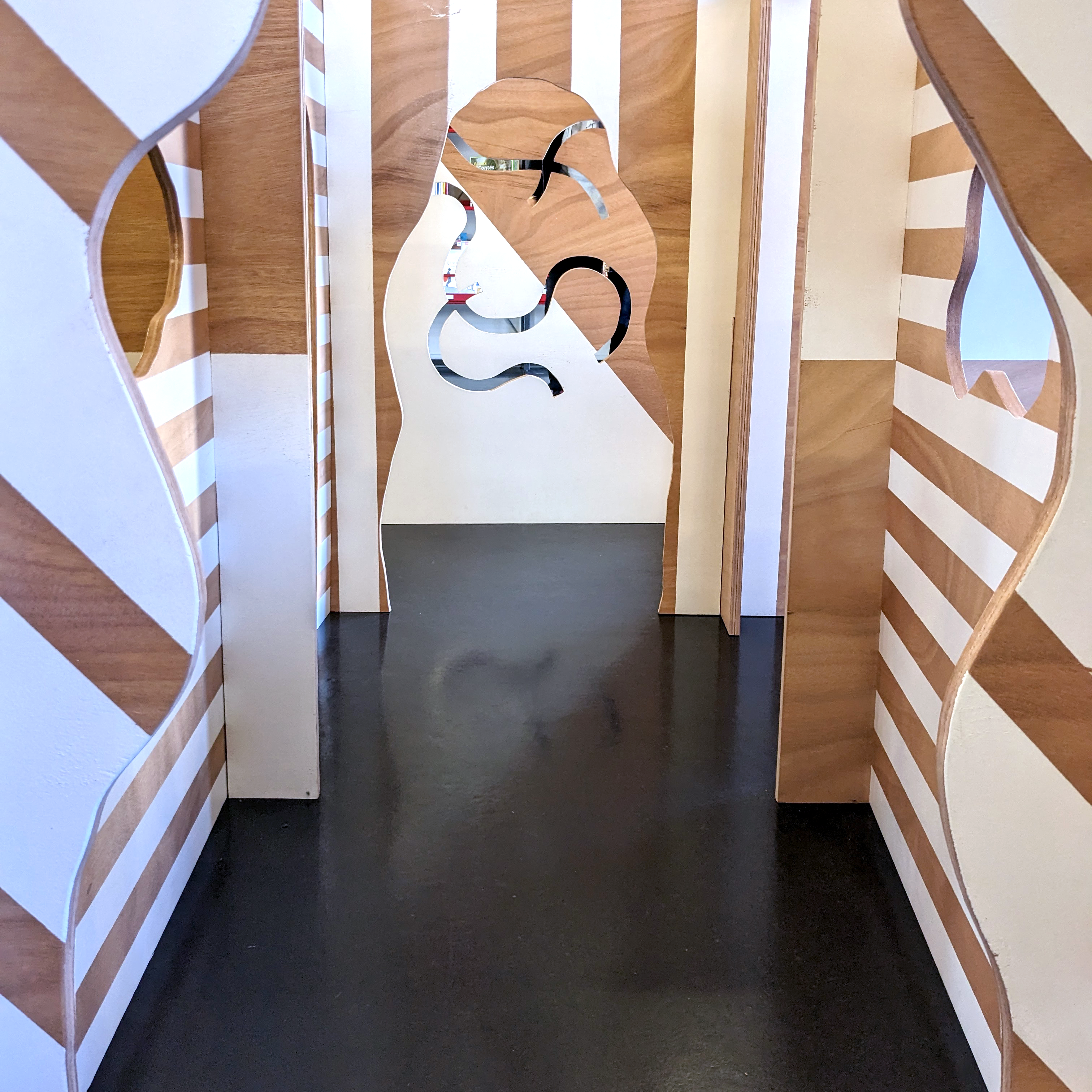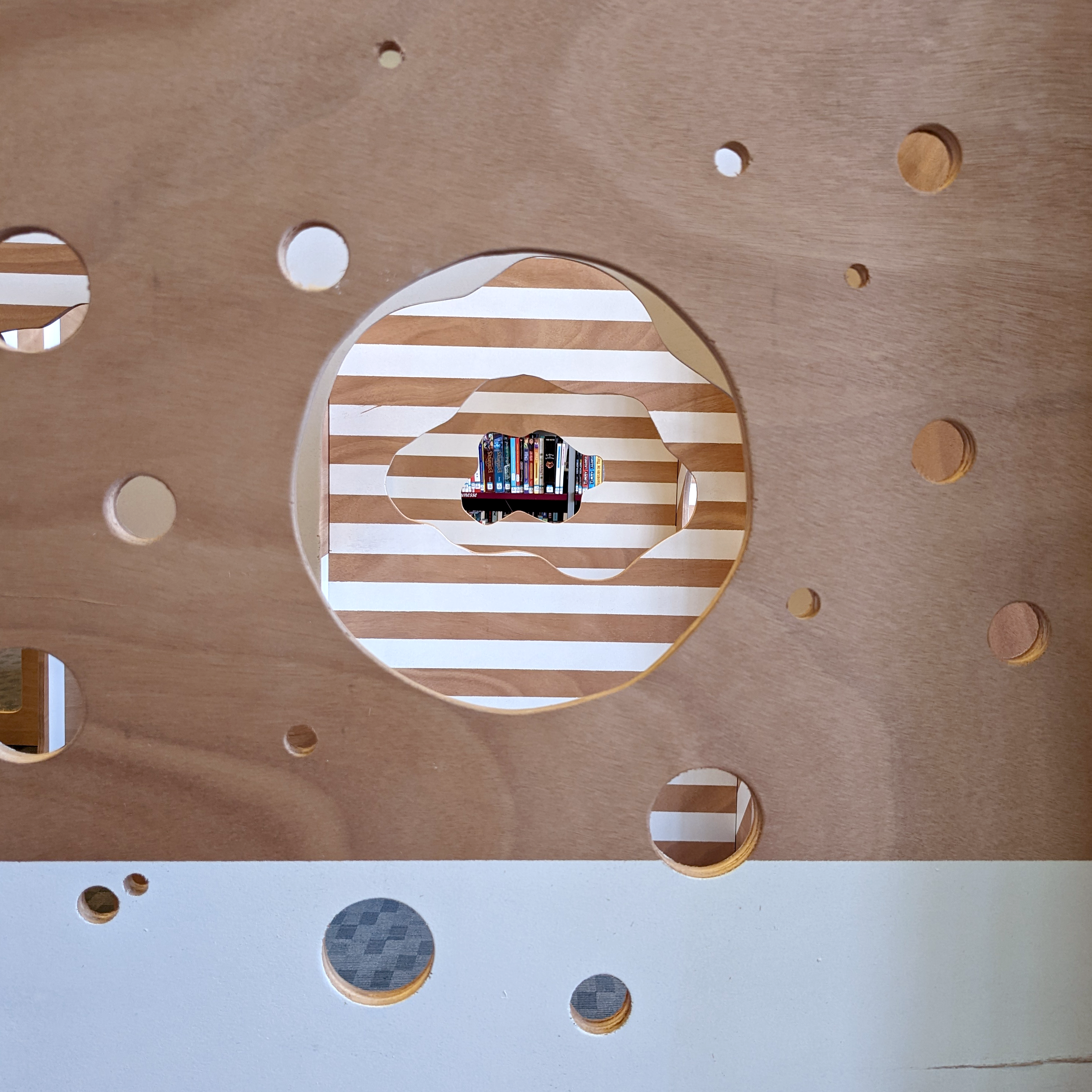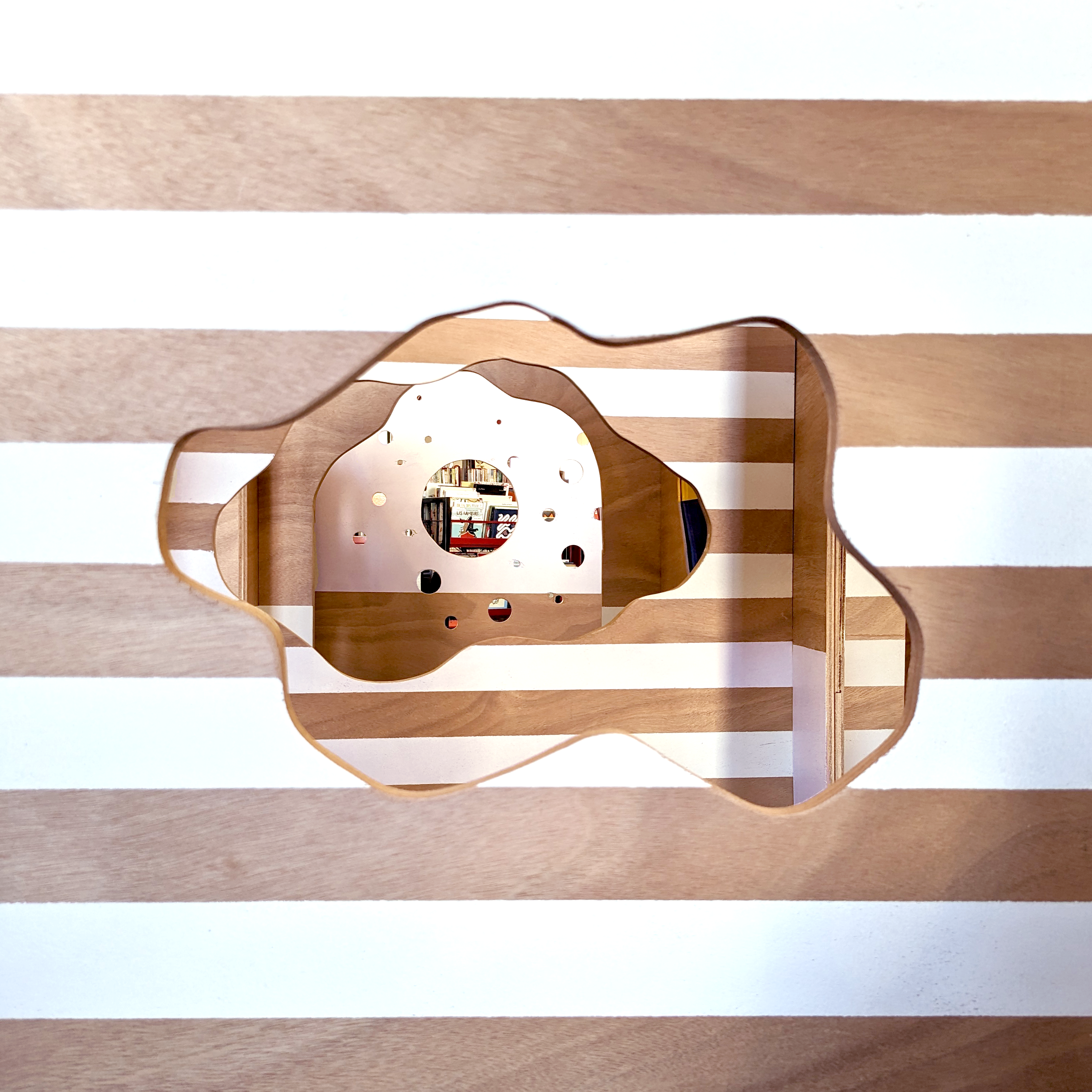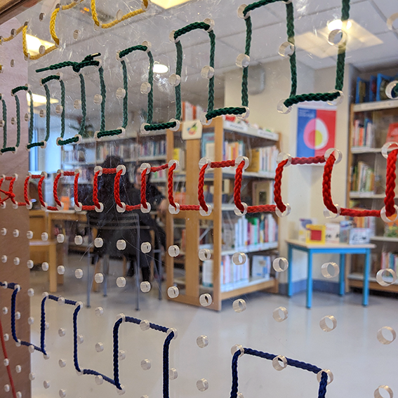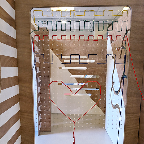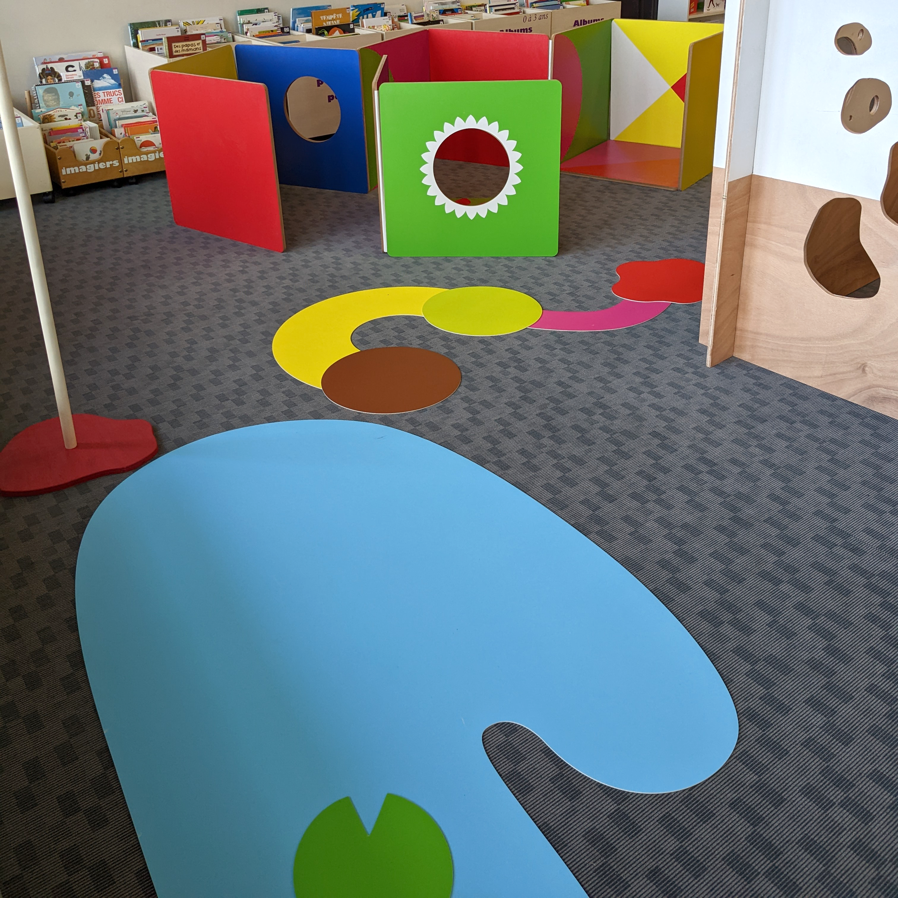 Ce module accompagne la médiation de mes livres auprès des tout-petits et leurs adultes. Il comprend un labyrinthe à coucou, des tapis-étang, des nids-paravents. L’objectif : se rencontrer ! Il y a des fenêtres pour s’apercevoir ou s’alpaguer, des coins pour se tomber dessus comme par hasard, des portes pour se rejoindre. Une grille de tissage au lacet permet de faire toue sorte de motif, mais pas tout seul ! Impossible de faire revenir le fil à soi sans l’aide de quelqu’un de lautre côté… Tout devient plus drôle et intéressant quand on est ensemble non?