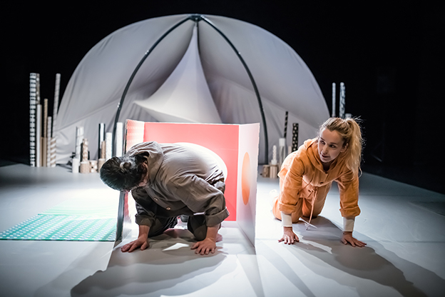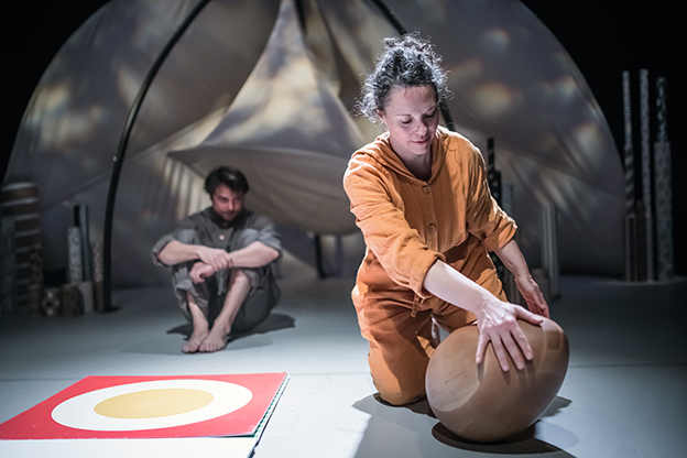 This show is thus the result of a long experimental work, alongside children, actors and musicians. The material and the substance of the show come directly from the workshops I designed and facilitated during my residency in the area of Grand Paris Seine et Oise, and from my book Coucou. Mateja’s very consistent staging takes us on a dreamy and playful wandering through gladness, excitement, love and contemplation.