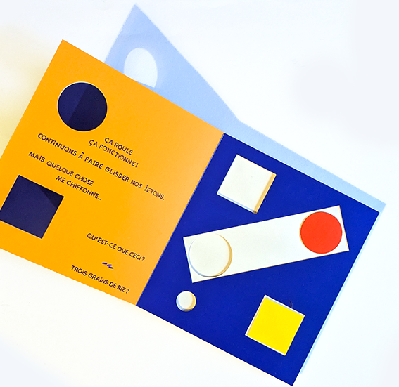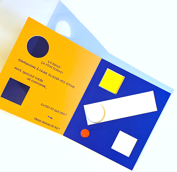 Ce livre se lit comme il se joue, à deux, pour découvrir le plaisir de faire ensemble. Un jeton pour toi, un jeton pour moi, et c’est parti ! On découvre cette drôle de machine à s’amuser, dans laquelle se sont installées de vivaces petites souris. Saurons-nous les attraper?